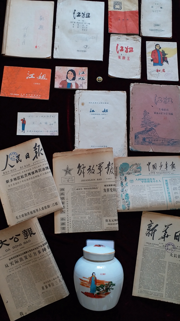 姜小平捐贈的這批關(guān)于江姐的文獻史料,是他10多年來潛心江姐專題收藏的全部藏品,包括目前發(fā)現(xiàn)最早講述江姐英雄事跡的單行本刊物;多種早期經(jīng)典版本的《江姐》連環(huán)畫;《人民日報》頭版刊發(fā)毛主席等黨和國家領(lǐng)導(dǎo)人觀看歌劇《江姐》并接見演員們的珍貴照片;上世紀(jì)六七十年代,全國各地各劇種編排的《江姐》油印本資料;關(guān)于電影江姐的早期大開海報;瓷都江西景德鎮(zhèn)制作的江姐肖像瓷器罐;《江姐》歌劇經(jīng)典唱片;重慶白公館制作的江姐紀(jì)念章等。