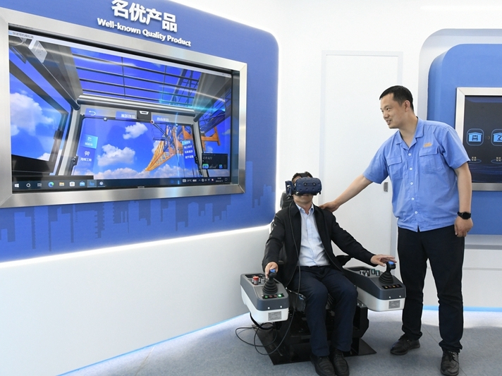 “通過VR系統(tǒng)模擬場景展示,沉浸式互動(dòng)體驗(yàn),我們能切身感受到百米高空塔機(jī)司機(jī)室內(nèi)現(xiàn)場操作的感覺,仿佛在云端俯瞰整個(gè)建設(shè)現(xiàn)場。也能真正感受陜建機(jī)股份公司塔機(jī)領(lǐng)先行業(yè)的硬核技術(shù)?!痹谛陆ǔ傻钠髽I(yè)文化展廳內(nèi),陜建機(jī)股份公司工程機(jī)械研究院副院長門新延給前來參觀的塔機(jī)產(chǎn)品客戶介紹。 4月13日,隨著最后一項(xiàng)“科技工程”VR展示系統(tǒng)的順利“入住”,歷時(shí)一年籌備建設(shè)的陜建機(jī)股份公司企業(yè)文化展廳正式落地開放。該展廳的建成,對(duì)于講好企業(yè)故事、弘揚(yáng)企業(yè)精神、展示產(chǎn)品成果、強(qiáng)化企業(yè)品牌具有重要作用。陜建機(jī)股份企...