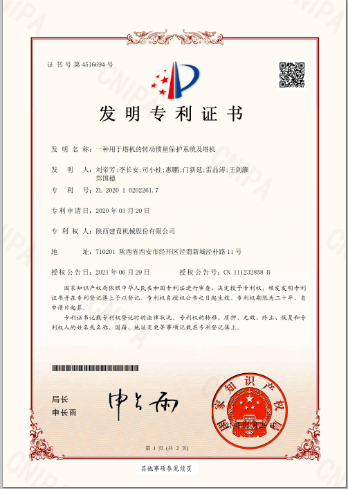 近日,陜建機(jī)股份公司《一種用于塔機(jī)的轉(zhuǎn)動慣量保護(hù)系統(tǒng)及塔機(jī)》獲國家知識產(chǎn)權(quán)局頒發(fā)的發(fā)明專利證書。作為基建施工過程中關(guān)鍵的設(shè)備,塔式起重機(jī)的工況直接影響著建筑產(chǎn)品的安全性與可靠性?,F(xiàn)有塔機(jī)在回轉(zhuǎn)控制中,大多數(shù)采用的技術(shù)是通過在回轉(zhuǎn)過程中增加渦流系統(tǒng)來提高回轉(zhuǎn)運(yùn)動過程穩(wěn)定性,以及保護(hù)大臂的作用。這種控制方式無法反饋,一旦回轉(zhuǎn)機(jī)構(gòu)出現(xiàn)問題,則會導(dǎo)致塔機(jī)在回轉(zhuǎn)過程中大臂出現(xiàn)較大的頓挫、反彈、甚至對大臂造成永久性破壞。針對現(xiàn)有技術(shù)中的技術(shù)問題,本發(fā)明提供了一種用于塔機(jī)的轉(zhuǎn)動慣量保護(hù)系統(tǒng)及塔機(jī),能夠有效避免...