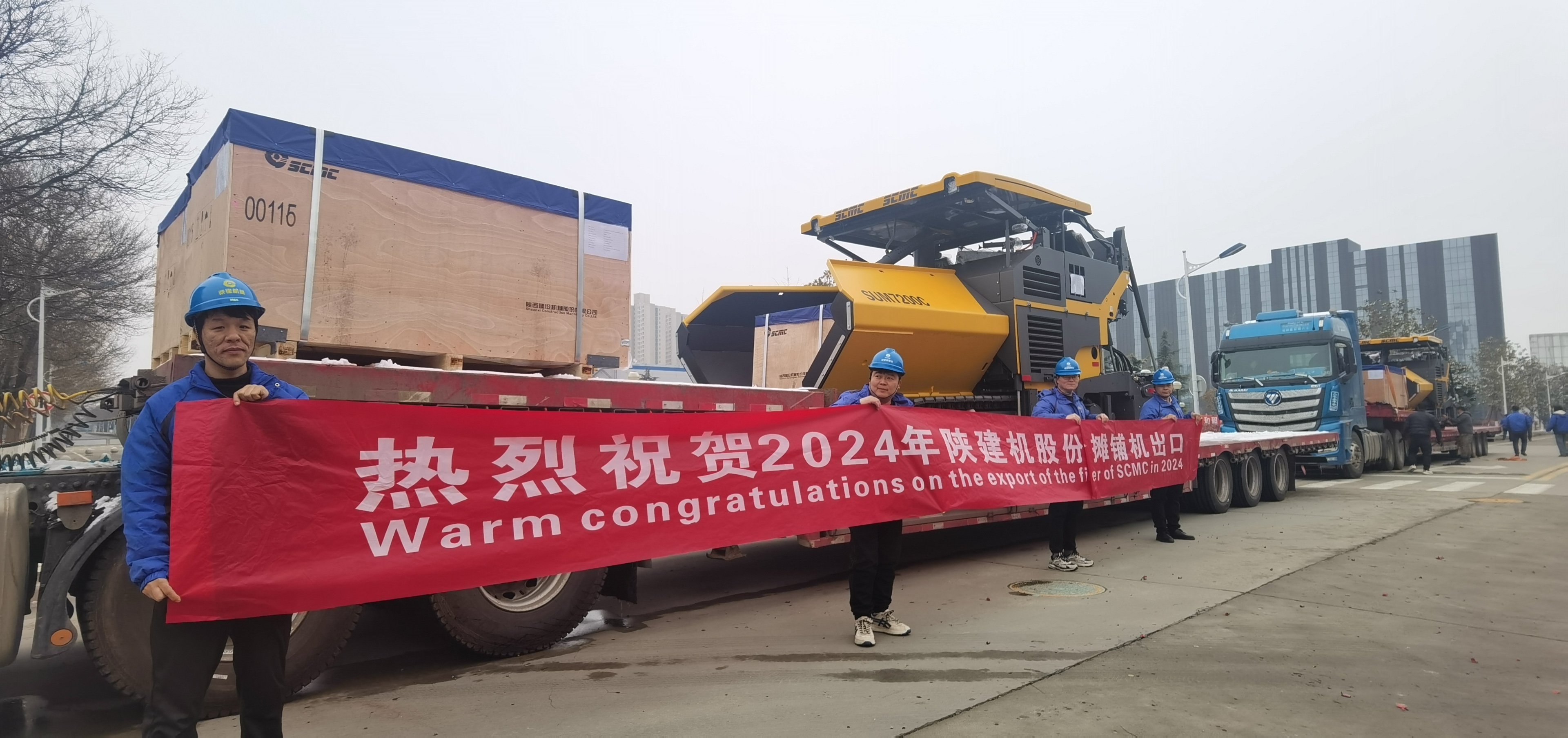 Shaanxi construction machinery shares after the first batch of export pavers shipped smoothly